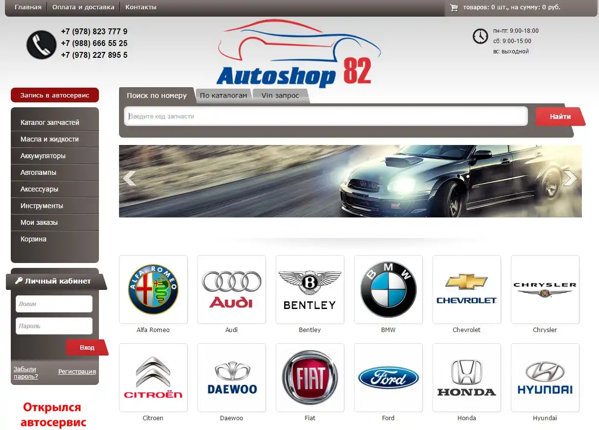 В один прекрасный день, что нужно найти в Симферополе интернет-магазин автозапчастей, чтобы в нем делать постоянно покупки. Люди уже давно так делают и по этому я решил, что нужно попробовать и мне. Оказалось, что в Симферополе очень много интернет-магазинов, в которых продаются автомобильные запчастей, но сложно было найти такой магазин, в котором были запчасти для всех моих трех иномарок. Впрочем, все таки мне удалось найти необходимое. И это был интернет-магазин автозапчастей autoshop82, который предоставлял услуги по реализации автомобильных запчастей в Симферополе и на территории всего Крыма. Первое, что мне понравилось в этом магазине – наличие большое ассортимента товаров для всевозможных иномарок. Здесь можно было заказать автомобильные запчасти буквально к любой иномарке, даже самые редкие. Правда, если в магазине нет на складе нужного товара, то придется немного подождать. Второе – удобство поиска запасных частей на сайте. Найти можно было любую даже самую редкую гайку для любой марки автомобиля. А если вы не знаете, как правильно называется запчасть, тогда можно связаться с менеджером магазина и он вам все объяснит.